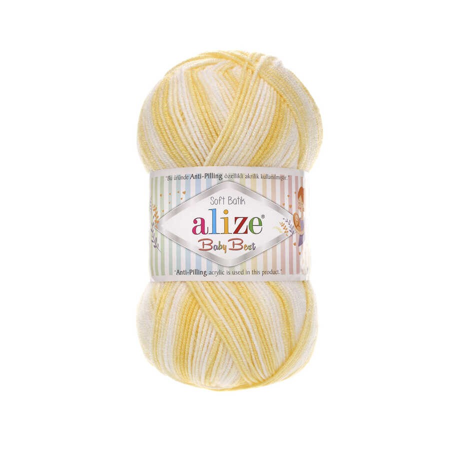 Alize Baby Best Batik El Örgü İpi, her amaca uygun klasik bir iptir. Bol renk çeşidi ile ön plana çıkmaktadır. Sonbahar-Kış koleksiyonuna ait bir üründür. Kazak, yelek, süveter ve daha birçok örgüde kullanıma uygundur. % 90 Akrilik, % 10 Bambu ‘ dan üretilmiştir. 100 gram ağırlığında, 240 metre uzunluğundadır. Üretici firma tarafından 4-5 numara şiş ve ya 2-4 numara tığ ile örülmesi tavsiye edilmektedir. Bu üründe anti-pilling özellikli akrilik kullanılmıştır. Ekranda gözüken renkler görseli incelediğiniz cihazınızın özellikleri ve bulunduğunuz ortamın ışık yansımasına göre gerçek iplik rengi ile farklılık gösterebilir. Farklı üretim serilerine ait ürünler arasında renk farkı oluşabilmektedir. Bu ürünü örgünüzde ihtiyaç olan miktarı hesaplayarak, gerekirse 1 adet fazla temin etmeniz tavsiye edilir. Alize Baby Best Batik El Örgü İpi ile ördüğünüz örgülerinizi elde yıkamanız önerilir. Çamaşır makinasında 30 derecede yıkayınız. Mümkünse sererek kurutunuz. Düşük ısı ile ütü yapılabilir. Örgülerinizi daha uzun süreli kullanmak için yıkama talimatına uymanız tavsiye edilir.